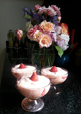 | Ingrédients : | - 250 g de mascarpone - 3 oeufs - 90 g de sucre - 1 pincée de sel - 250 g de fraise ou plus ... c'est comme on le sent et selon le stock de fraises dont on dispose - Un peu de colorant rouge pour faire rose ! - Biscuits à la cuiller - Un peu de rhum - Un plat transparent si possible ou des coupes individuelles |